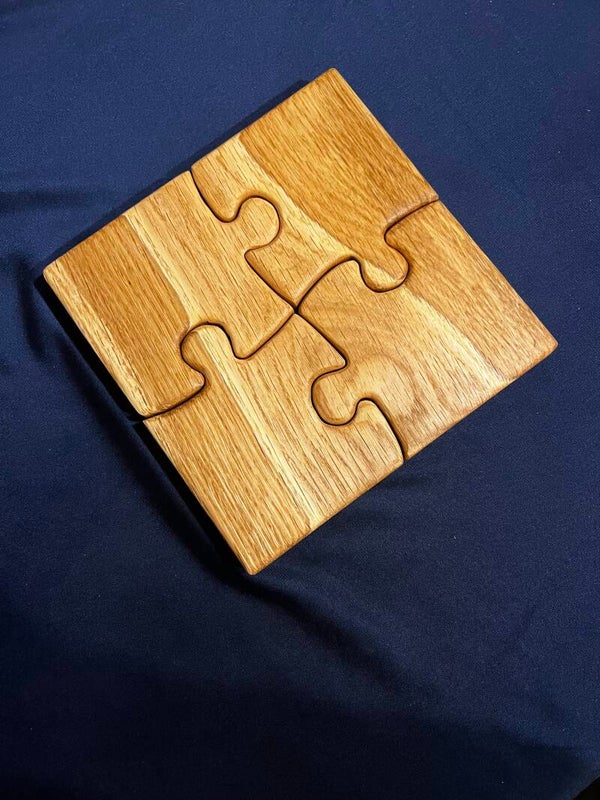 Massives Eichenholz mit schöner Maserung in Puzzleform.