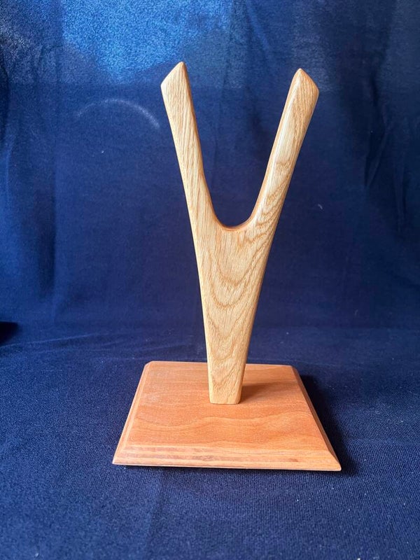 Edler Kopfhörer-Ständer, in Handarbeit gefertigt, aus massiver Eiche und mit stabilem Fuß. Ohne Kopfhörer!